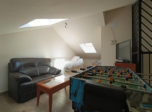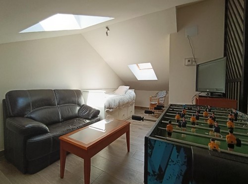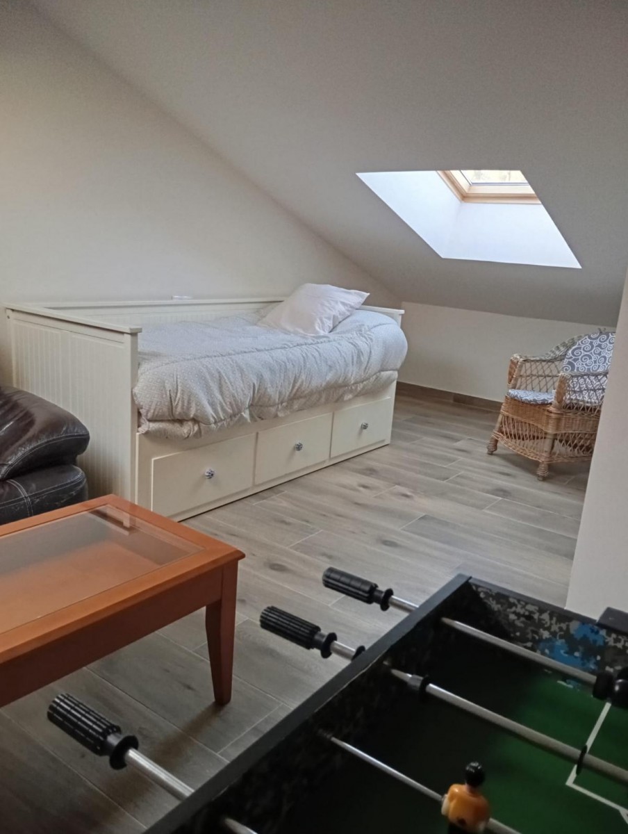 Situada en el Valle Amblés, a solo 8 km de Ávila, la casa ofrece un entorno ideal para el descanso y el contacto con la naturaleza. Dispone de salón-comedor con chimenea, cocina equipada, cuatro habitaciones con baño privado (dos de matrimonio y dos dobles), y una buhardilla multiusos con sofá cama, juegos, TV y zona de lectura. Cuenta además con patio, barbacoa, bicicletas gratuitas, cuna, trona y camas supletorias.